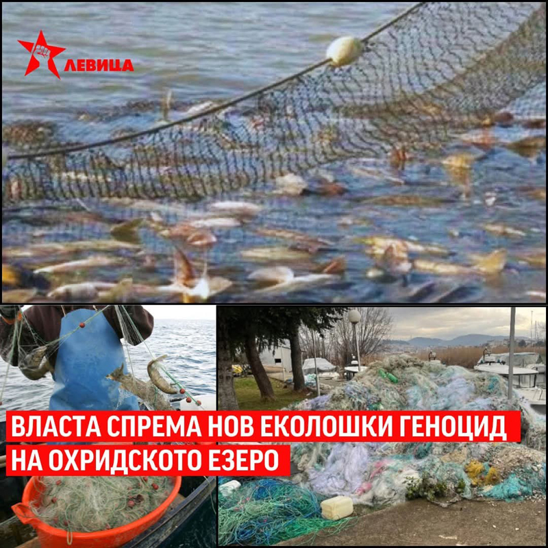 Левица најостро ја осудува неодговорната, корумпирана и клиентелистичка политика на Владата предводена од ДПМНЕ и Министерството за земјоделство, шумарство и водостопанство, кои со доделувањето концесии за стопански риболов вршат директен еколошки геноцид врз Охридското Езеро!