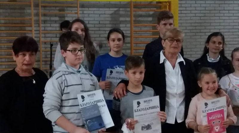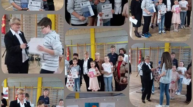 Наградени ученици од предметна настава кои освоија места на ликовниот конкурс, под менторство на Ристе Пуцоски.