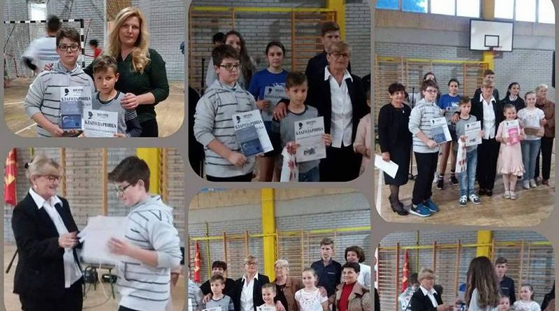 Наградени ученици од предметна настава кои освоија места на ликовниот конкурс, под менторство на Ристе Пуцоски.