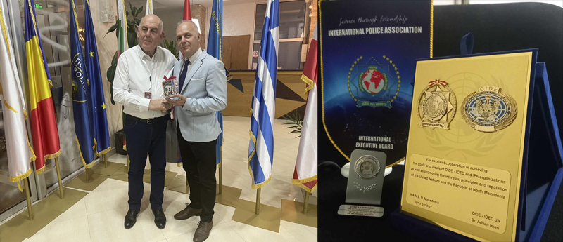 Притоа, на претседателот Стефан Димоски, му беа доделени плакети за „одлична соработка и достигнувања на целите и интересите, принципите и репутацијата на Обединетите Нации (ОН) и на Интернационалната полициска асоцијација (ИПА) Македонија,” кои, му беа врачени од Аднан Имери, претседател на Меѓународната организација за економски развој OIDE, при Организацијата на Обединетите Нации (ООН) и Игно Стојков, претседател на Управниот одбор на ИПА Македонија.